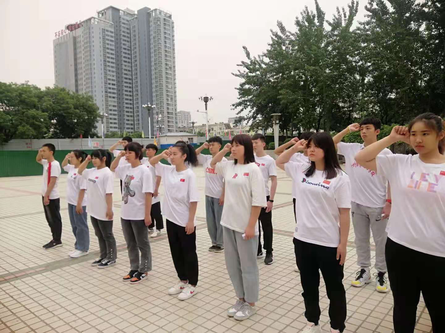 学生们在英雄纪念碑前宣誓:继承革命先辈的遗志,刻苦奋进,报效祖国
