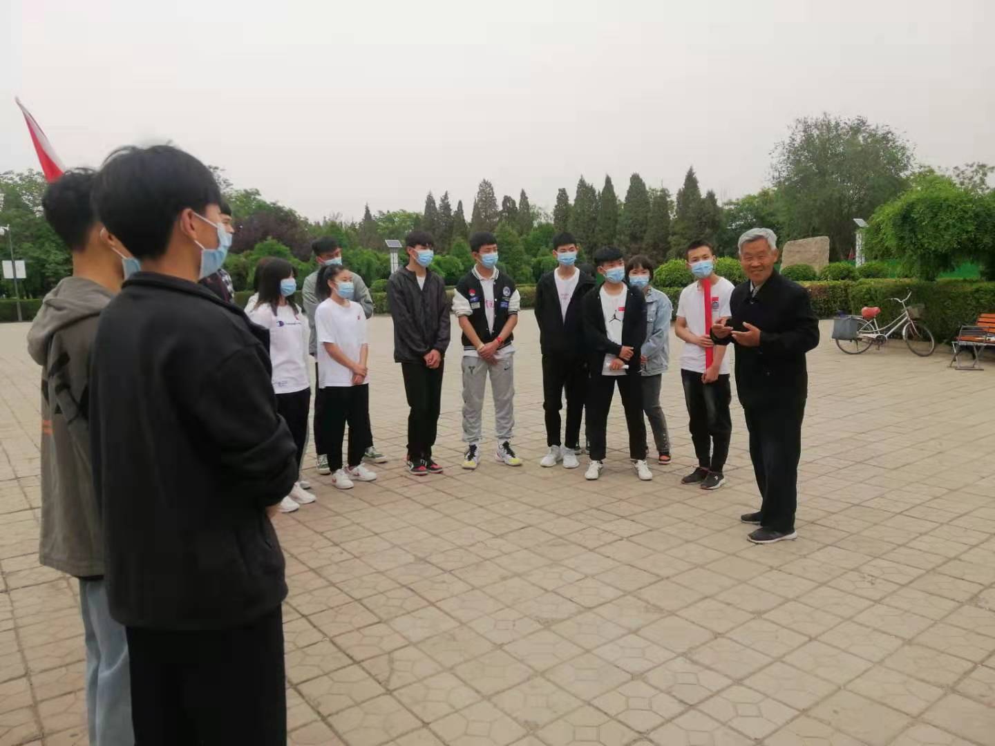 学生们在英雄纪念碑前聆听红色故事