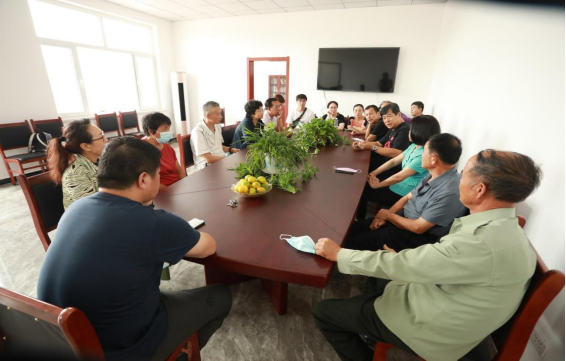 图为沧州体育运动学校党员干部与大梨园村村干部及群众代表,在由学校援建的村委会办公室内,就巩固脱贫成果、赓续脱贫攻坚精神、切实解决群众的实际困难等问题进行座谈